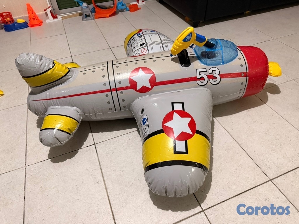 se vende por mudanza avión inflable de piscina con pistolita de agua