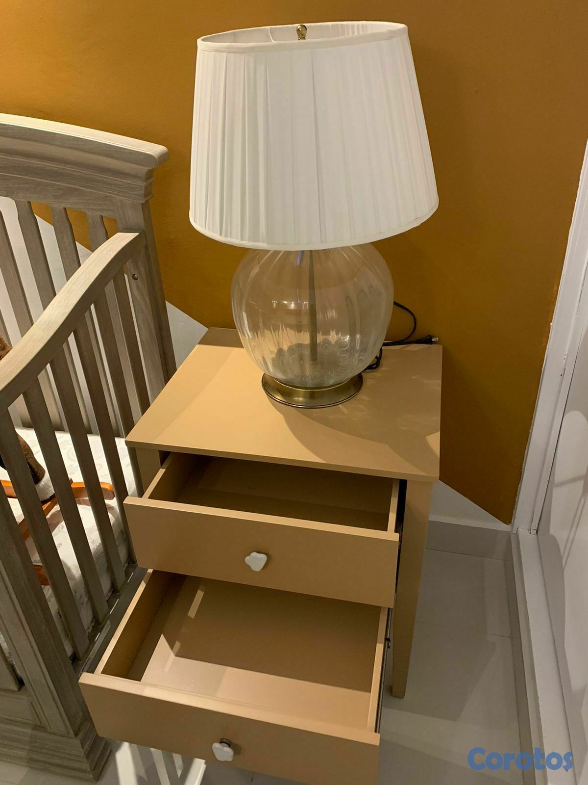 Mesa de bebé de dos gavetas.