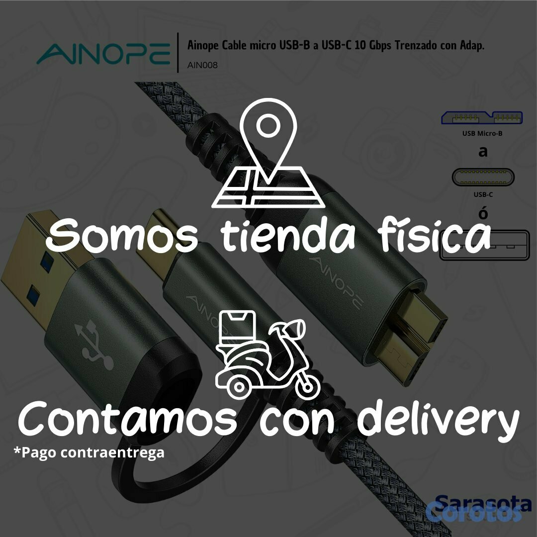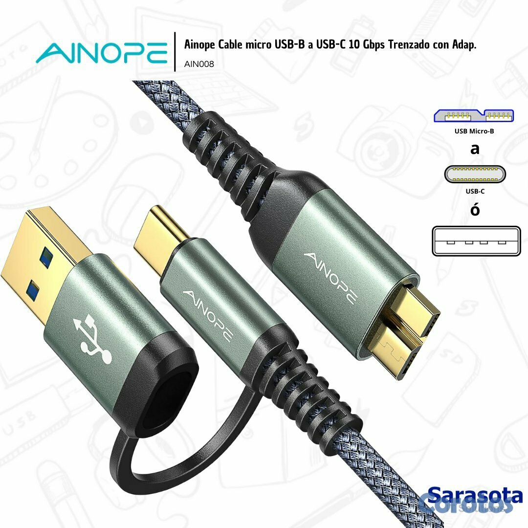 Ainope Cable micro USB-B a USB-C 10 Gbps Trenzado con Adaptador USB