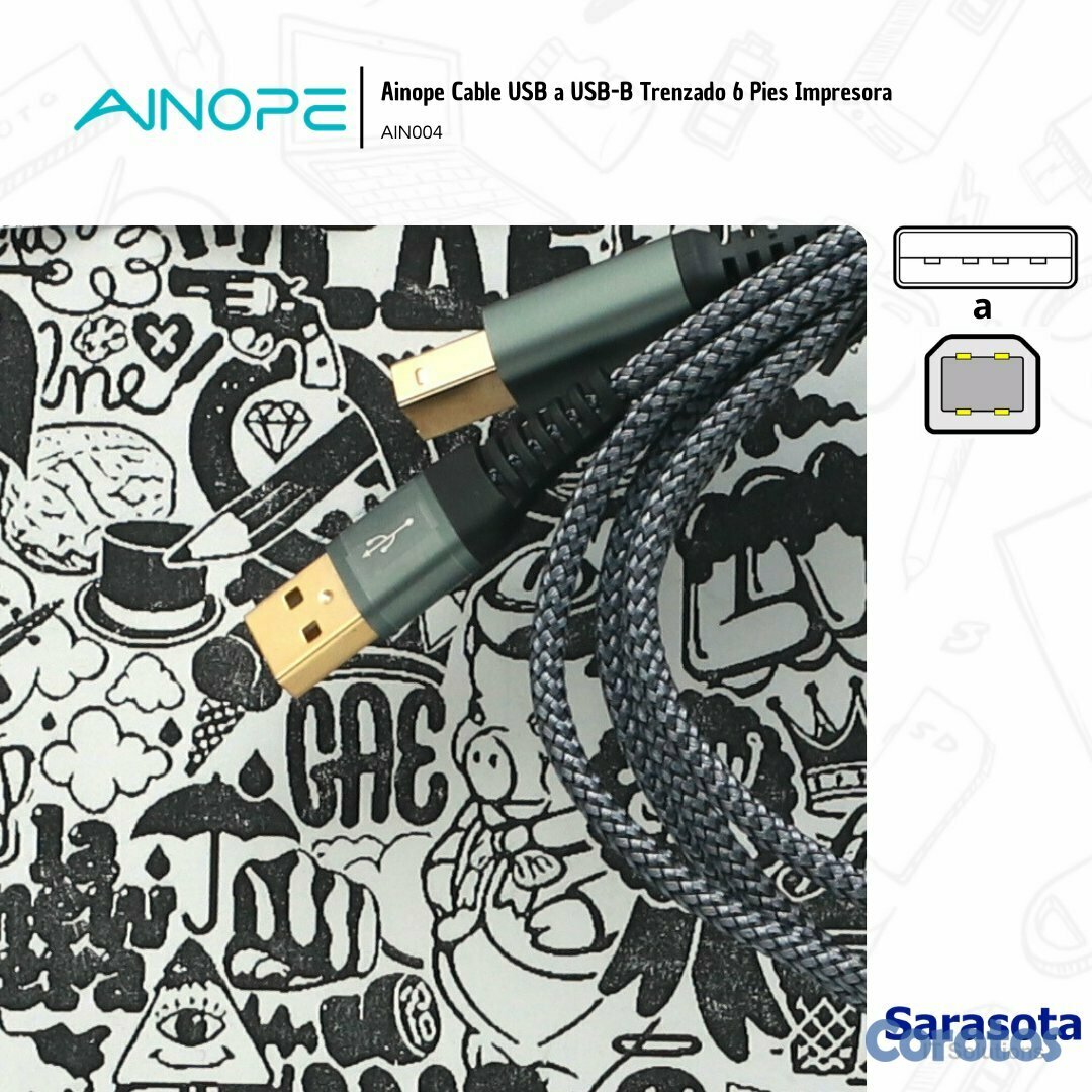 Ainope Cable USB a USB-B Trenzado Impresora