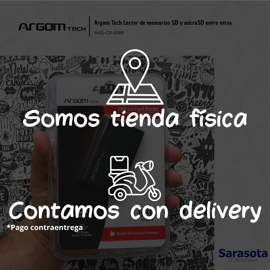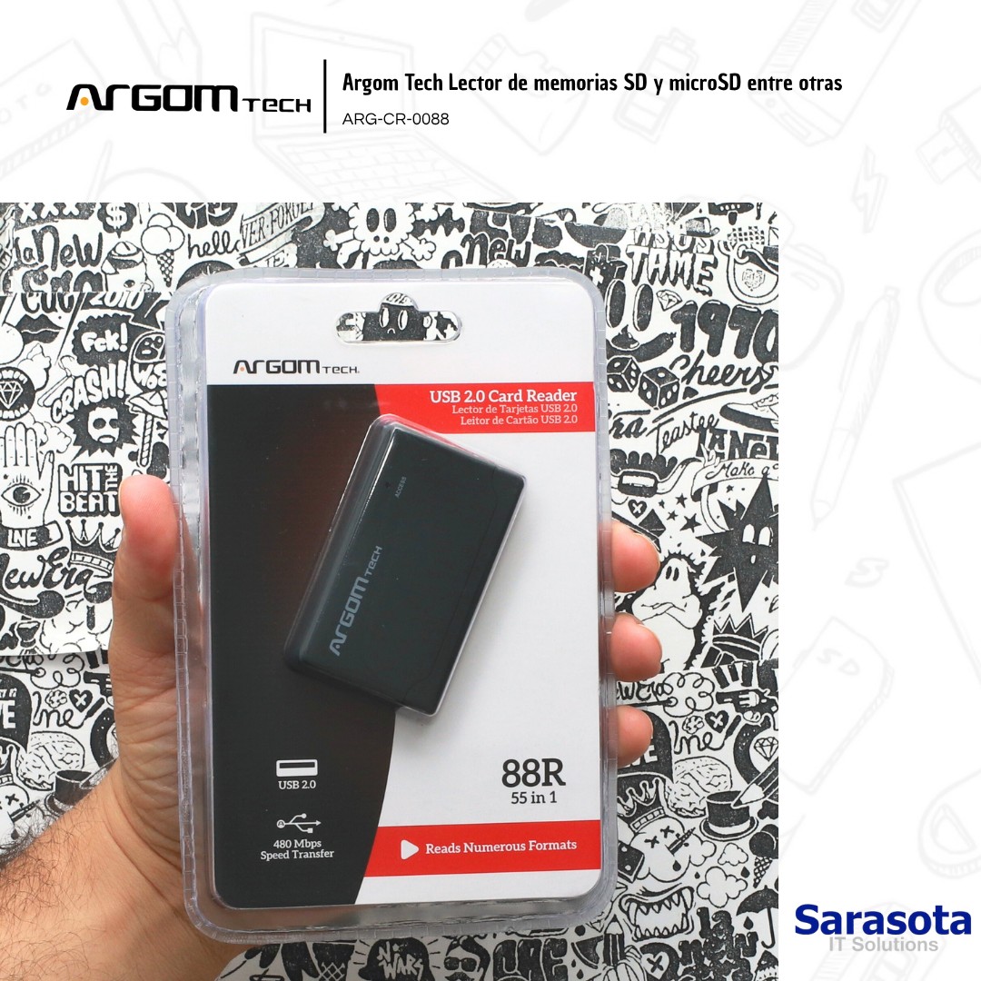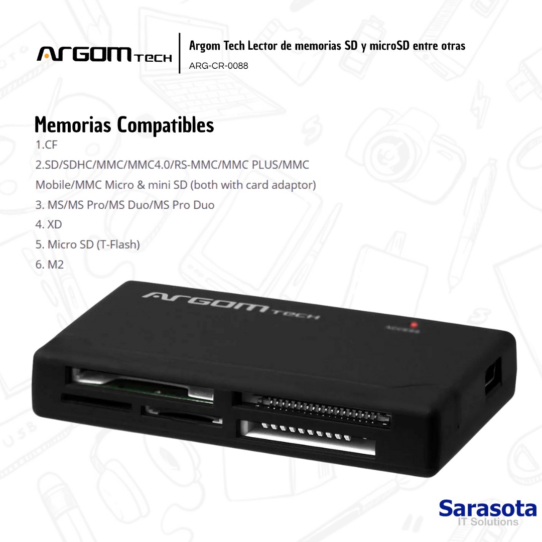 Lector de tarjetas de memorias marca Argom (CompactFlash o CF, SD, microSD entre otras), ARG-CR-0088