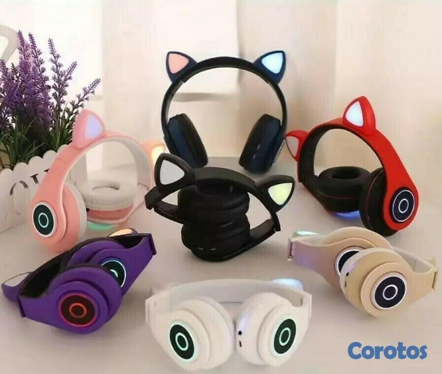 Orejas de corazon y huellas de gato con luz LED.