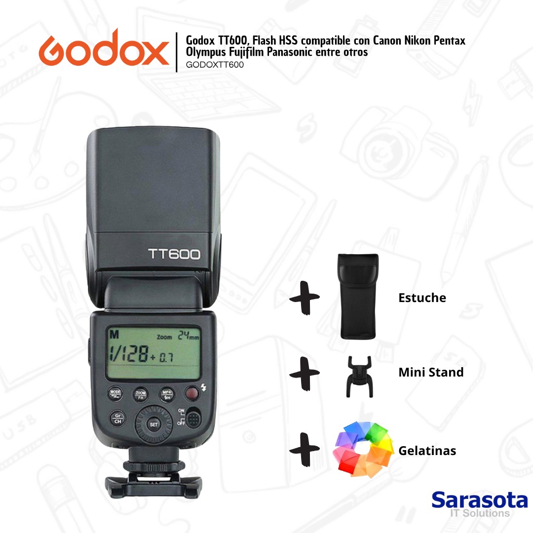 Godox TT600, Flash HSS compatible con Canon Nikon Pentax Olympus Fujifilm Panasonic entre otros con garantía de un año