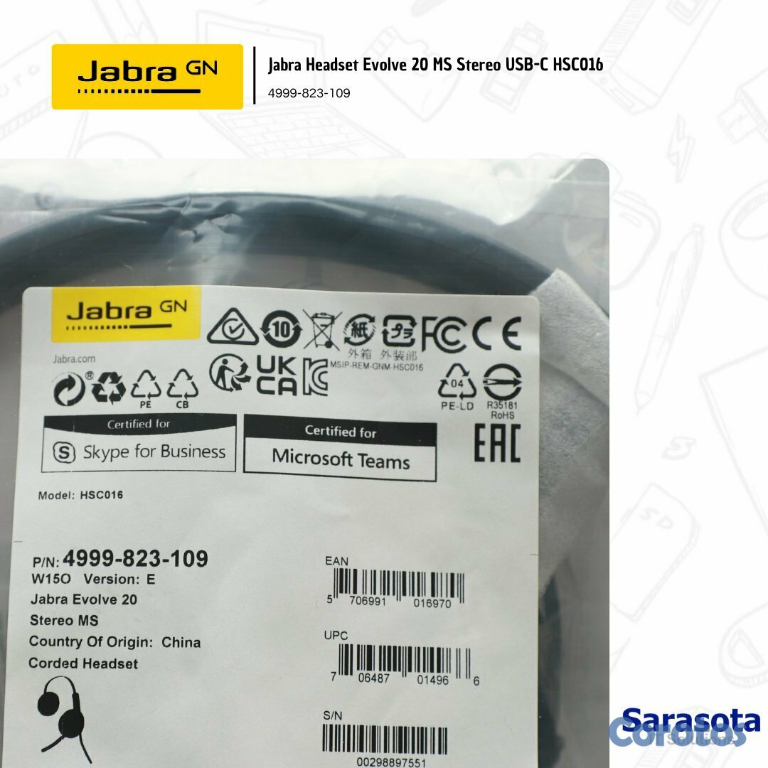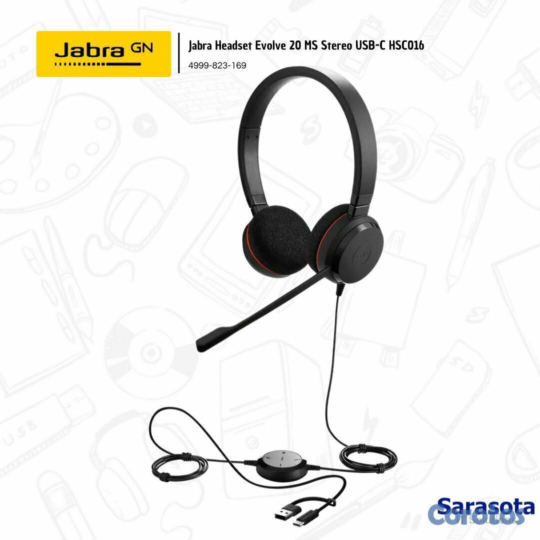 Jabra HeadSet Evolve 20 MS Stereo USB-C HSC016 4999-823-169
