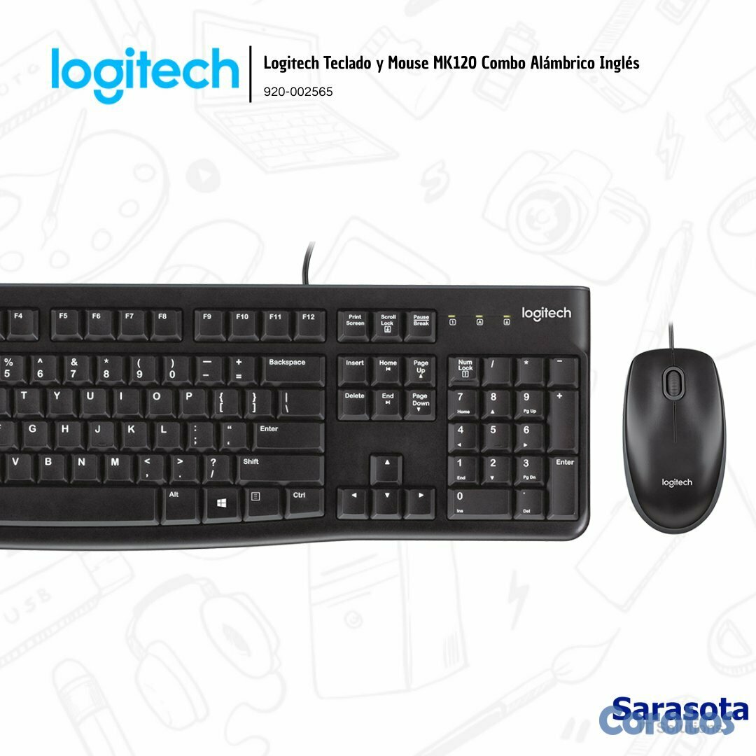 Logitech Teclado y Mouse MK120 Combo Alámbrico Inglés (920-002565)