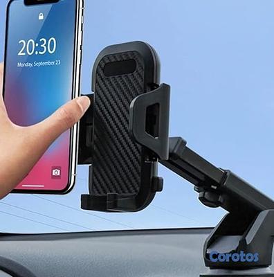 Almohadilla de esponja amortiguadora para llevar el teléfono de forma más estable Cuenta con efecto de barra de rotación de 270 grados; se estira hasta 29 cm de longitud; base de teléfono con rotación de 360 grados ; ventosa de dos engranajes para un montaje constante en una superficie lisa.