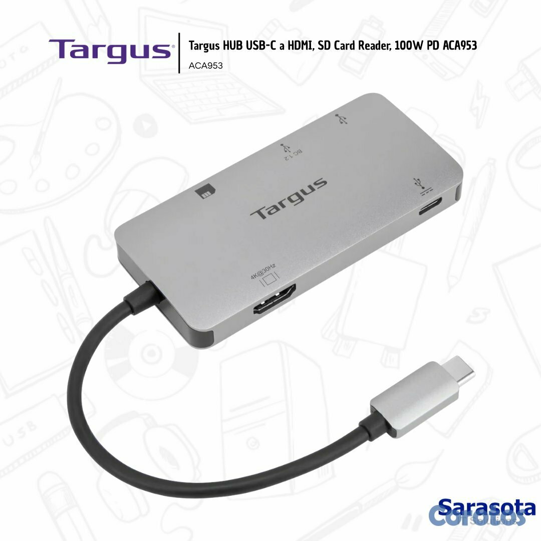 Targus HUB USB-C a HDMI, SD Card Reader, 100W PD ACA953