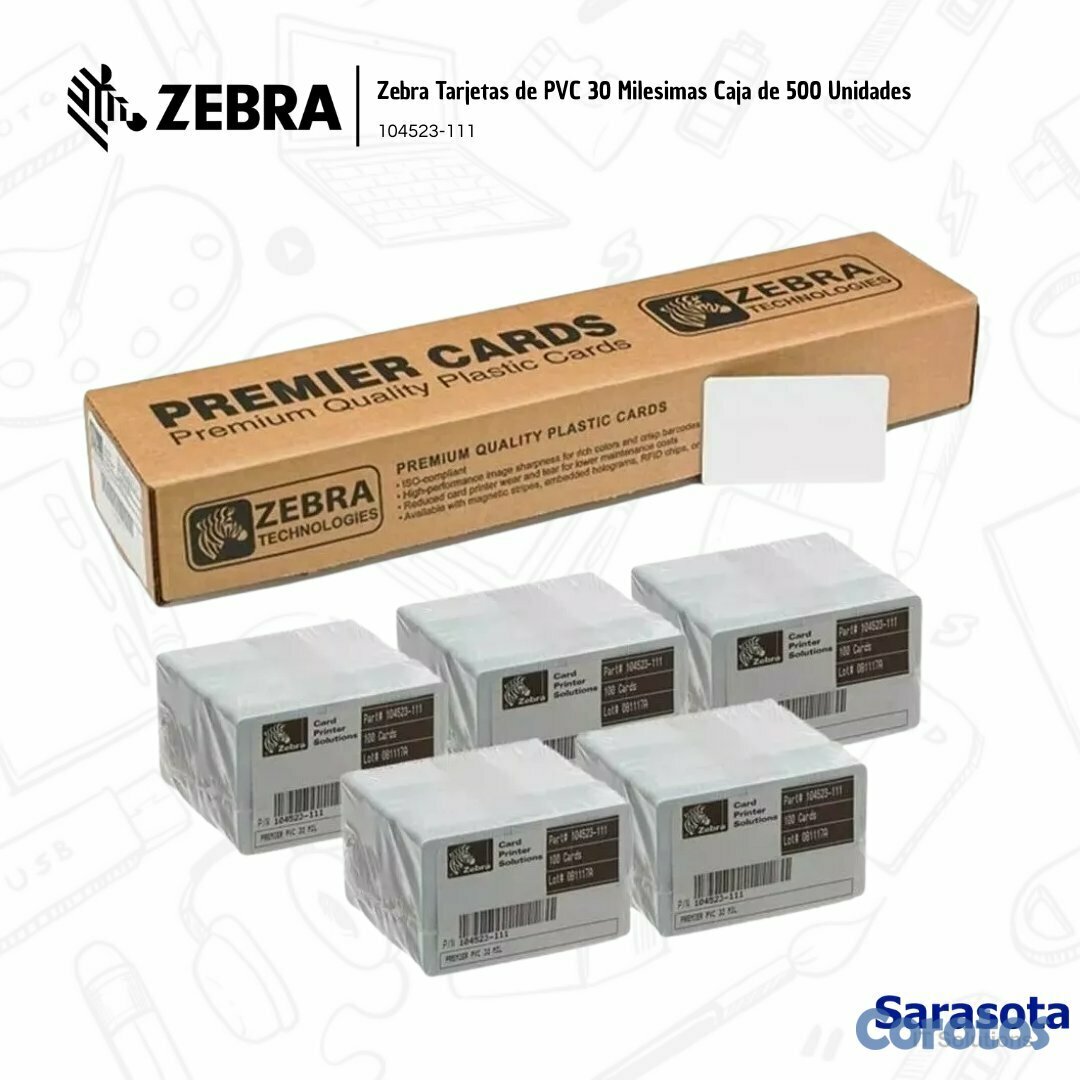 Zebra Tarjeta PVC 30 Milesimas Caja de 500 Unidades