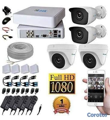 Kit básico de 4 camara hilook, manejar vía teléfono, un año de garantía, instalación incluida.