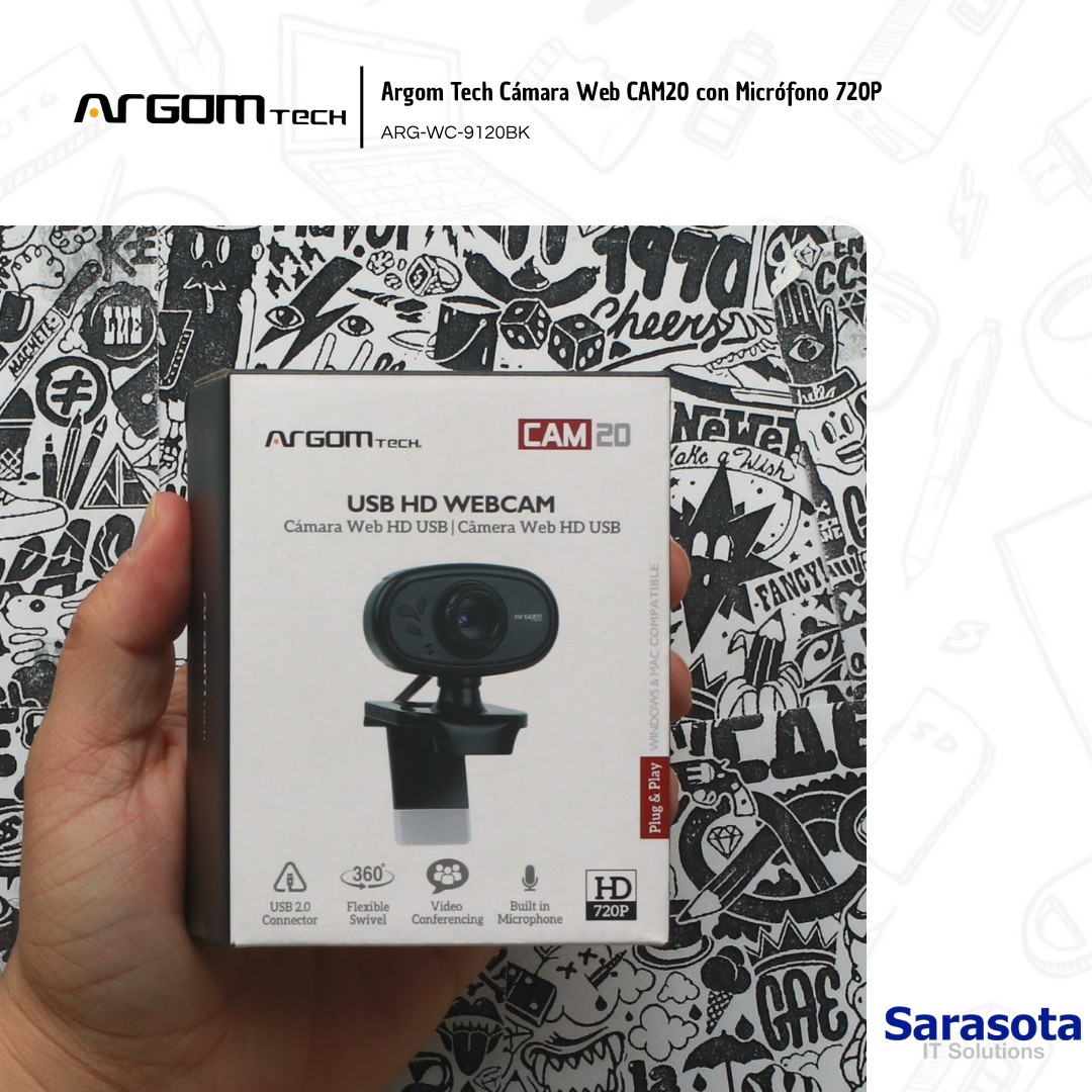 Argom Tech Cámara Web CAM20 con Micrófono 720P, ARG-WC-9120BK
