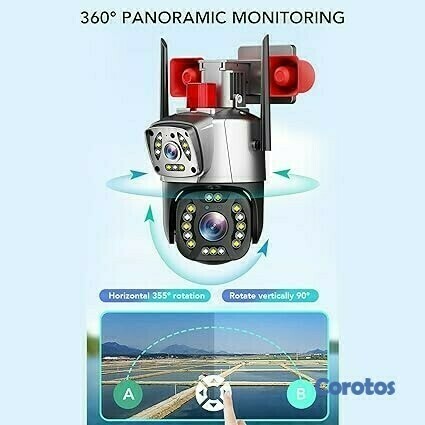 controle la rotación izquierda y derecha de la cámara a través de una aplicación de teléfono inteligente, lo que permite una panorámica de 360 grados sin puntos ciegos, lo que proporciona una seguridad completa.