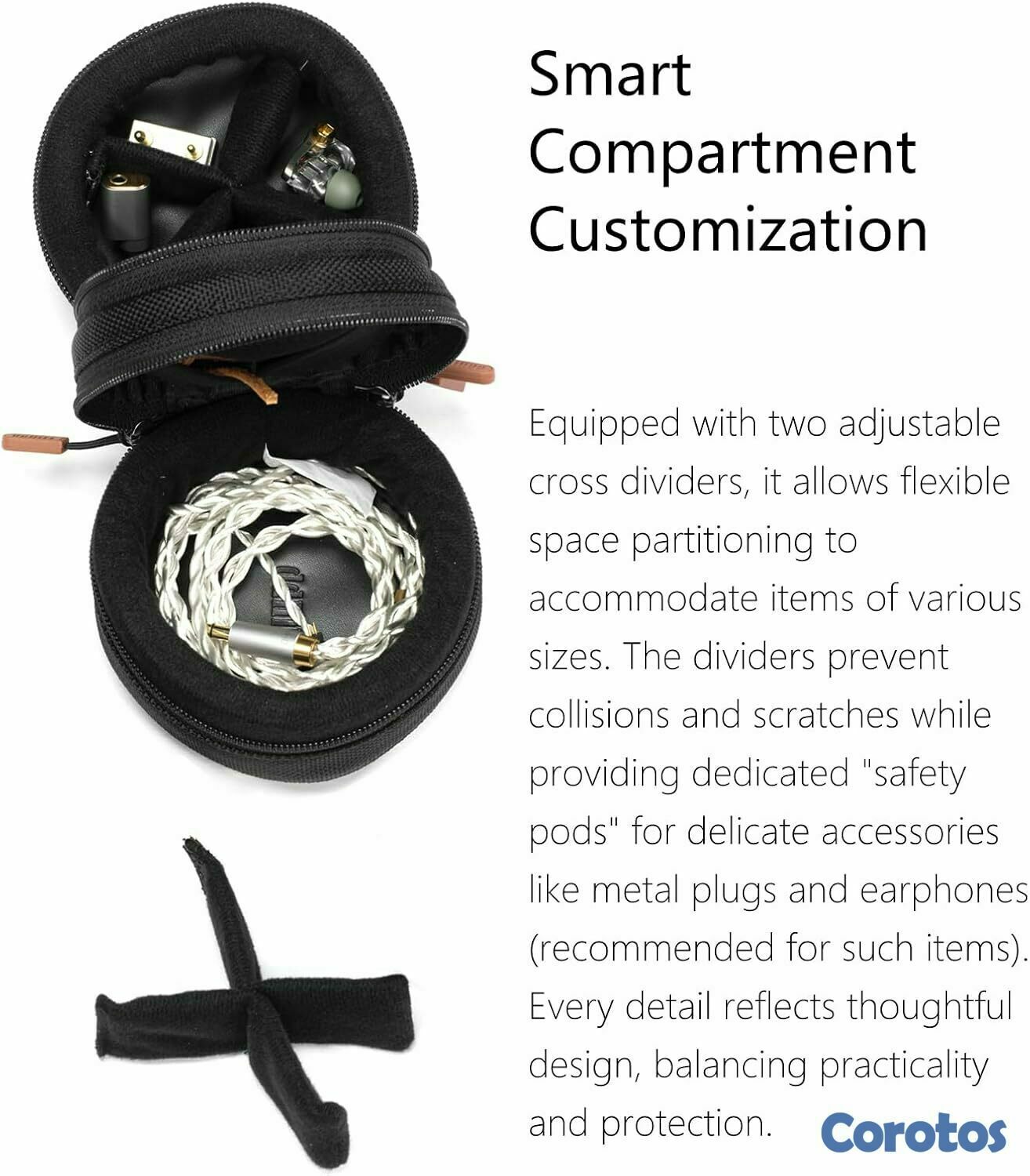 Partición científica: Esta pequeña bolsa de almacenamiento se divide en capas superior e inferior. La capa superior está equipada con particiones cruzadas ajustables, que pueden adaptarse fácilmente a artículos de diferentes tamaños; la capa inferior no tiene particiones y puede almacenar directamente auriculares o pequeños decodificadores. La partición científica permite una mejor organización de los artículos.