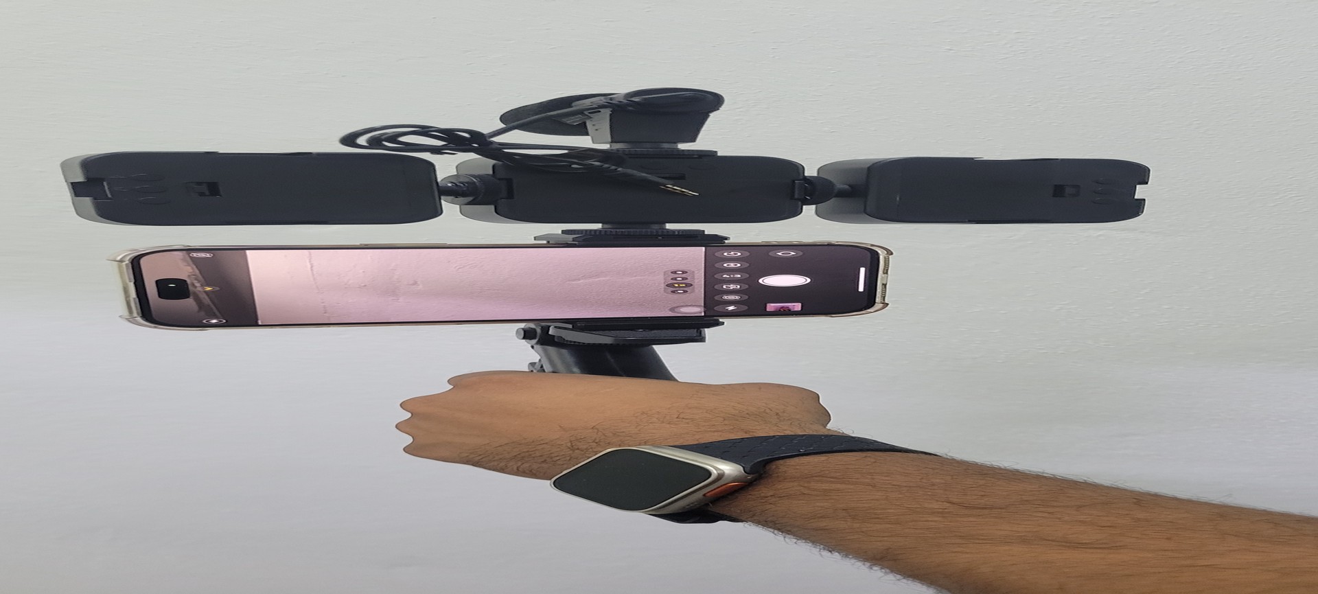 Soporte para teléfono expandible, el rango de sujeción del soporte del teléfono es de aproximadamente 5.4-8.3 cm/2.13-3.27 pulgadas.