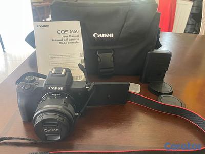 La cámara Canon EOS M50 original del 2018. con su estuche , se usó una sola vez
