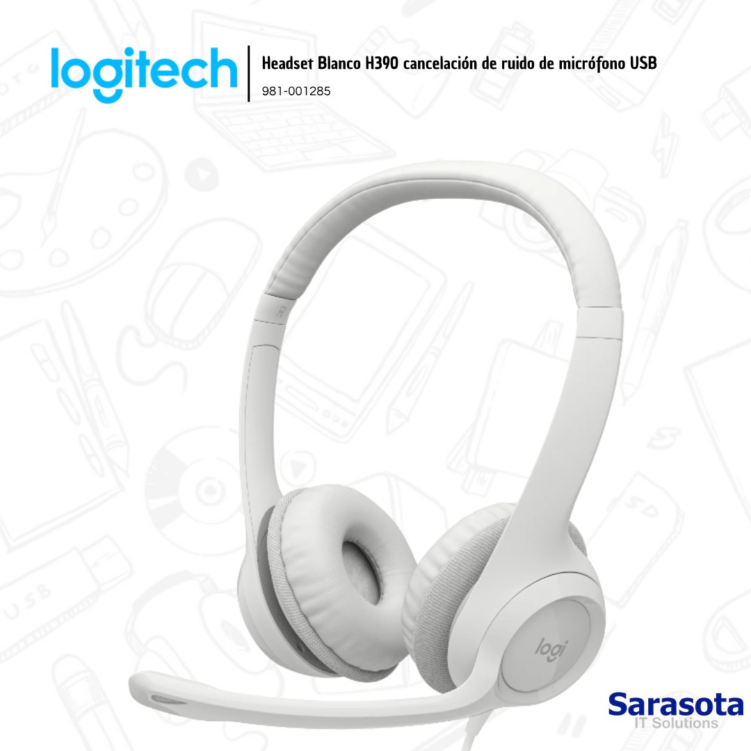Logitech Headset Blanco H390 cancelación de ruido
