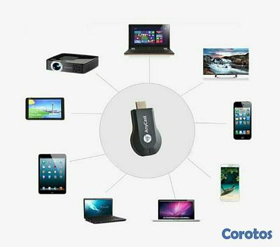 Dispositivo de transmisión de contenido multimedia que se conecta al puerto HDMI de tu televisor. Podrás transmitir música, videos, fotos y documentos desde cualquier Android, IOs o Windows hacia tu TV, iphone o proyector.