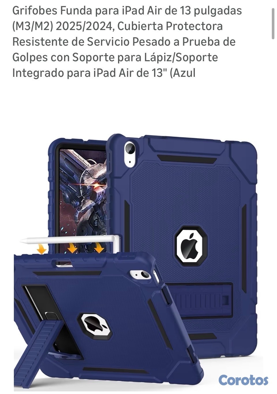 Modelo Funda para iPad Air de 13 pulgadas(M3/M2) 2025/2024 Cubierta ProtectoraResistente de Servicio Pesado a Prueba de Golpes con Soporte para Lápiz/SoporteIntegrado para iPad Air de 13" (Azul