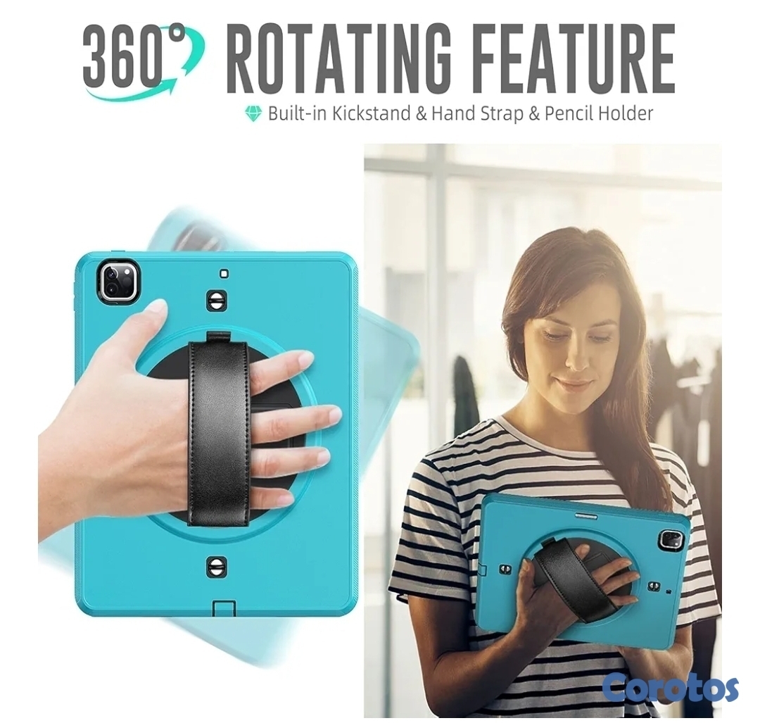Funda para iPad Pro de 12,9 pulgadas (4ª generación, modelo 2020), resistente a prueba de golpes, con soporte giratorio 360, correa de mano, correa de hombro, protección contra caídas con protector de pantalla.