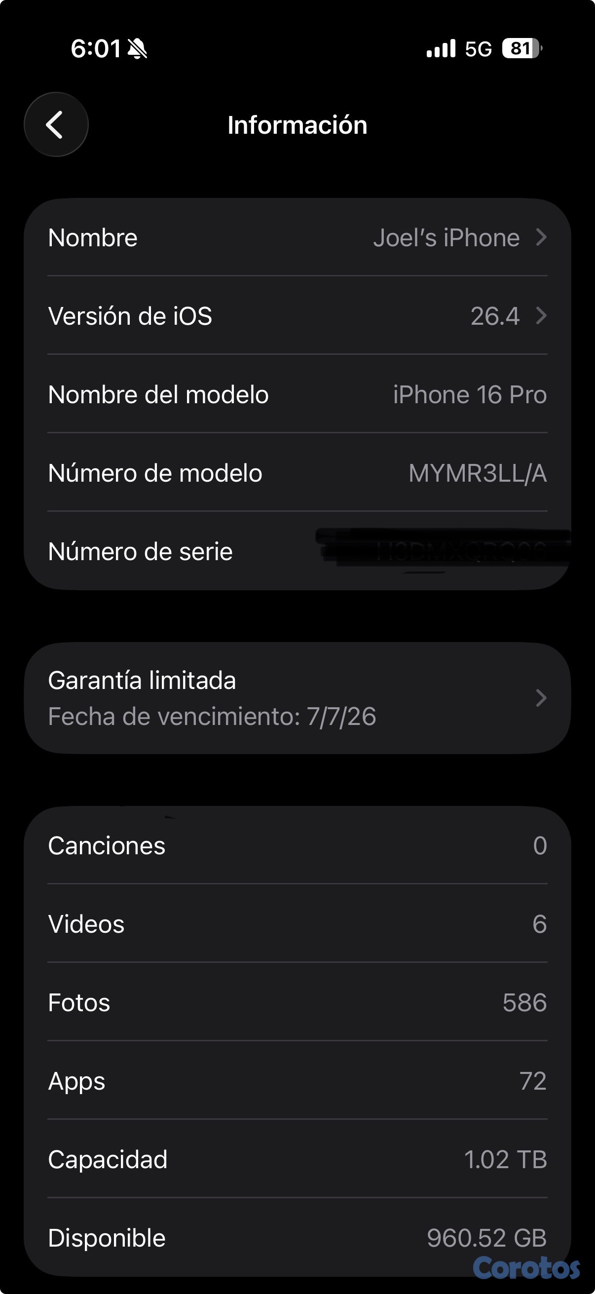 iPhone 16 Pro de 1TB como nuevo!