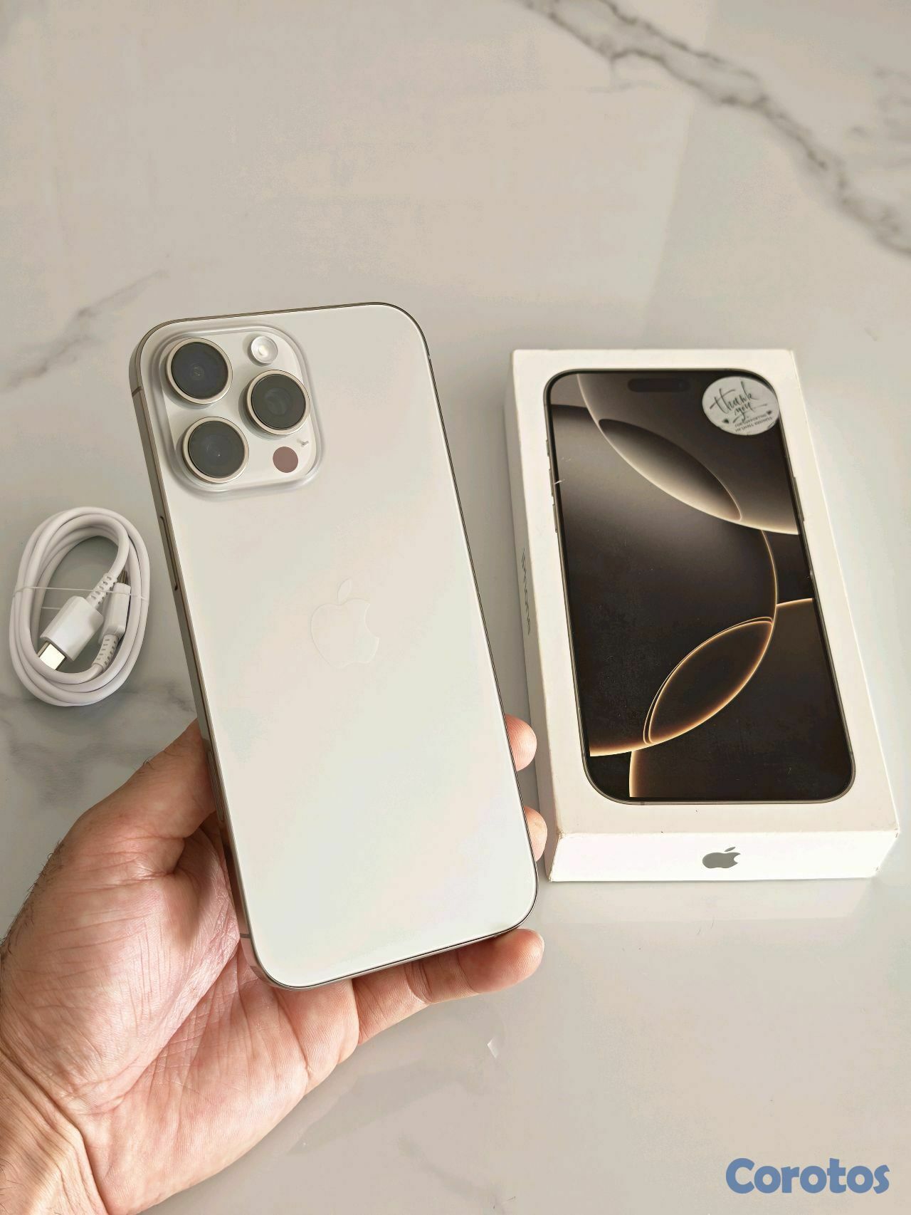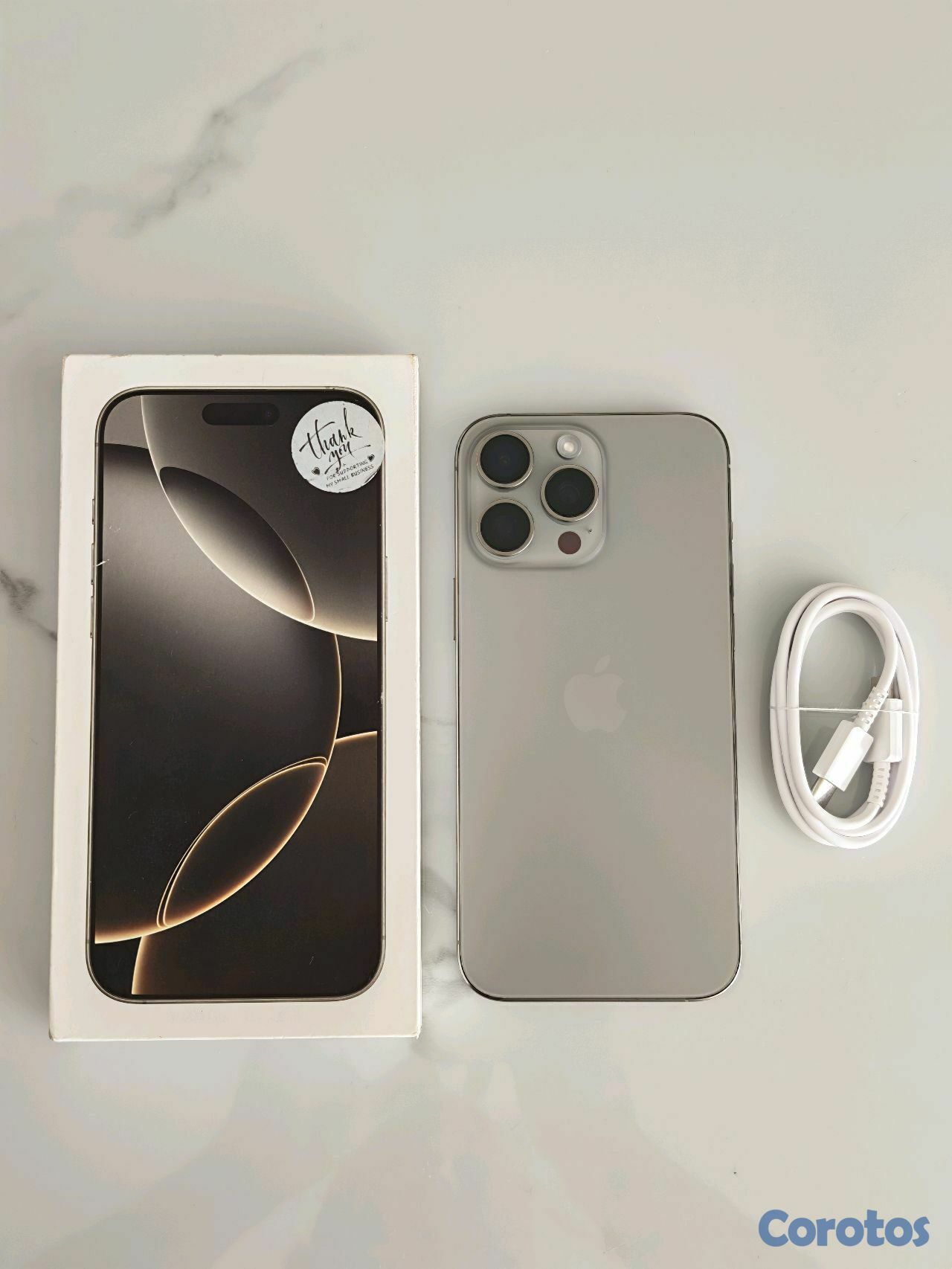 Iphone 16 Pro Max 256GB, color dorado, desbloqueado de fábrica. El celular está realmente en condiciones de nuevo, sin detalles, con batería al 100% y Apple Care hasta julio.