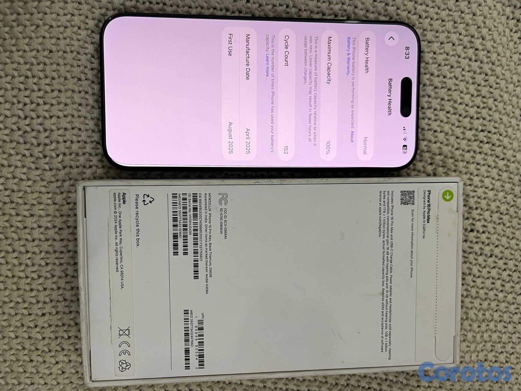 IPHONE 16 Pro Max 256GB Factory unlock Bateria 100% BLACK TITANIUM