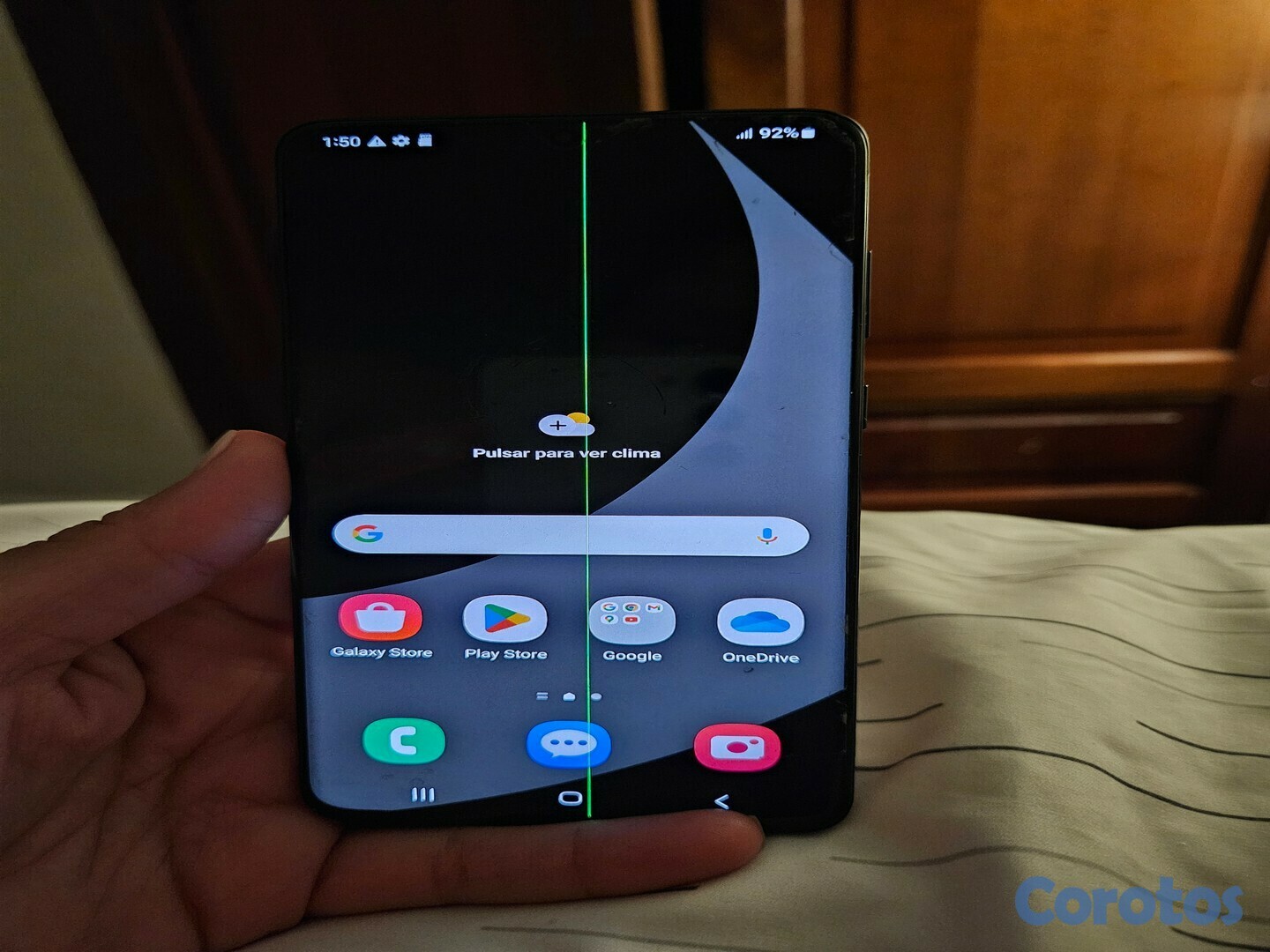 Tiene el cristal de atrás roto pero no se ve con el cover, además de una línea verde en la pantalla, luego se ahí funciona nítido todo.