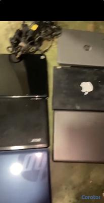 6 laptops para ser utilizadas para piezas solo una tiene la pantalla rota las demás están bien y 3 fuentes
