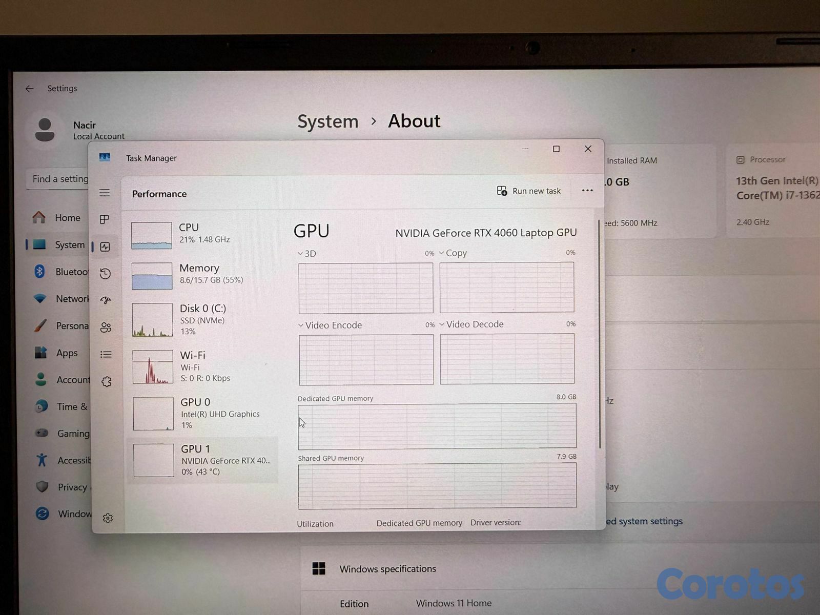 ⚙️ Procesador: Intel Core i7-13620H (13ª Gen, hasta 4.9 GHz, 10 núcleos / 16 hilos)