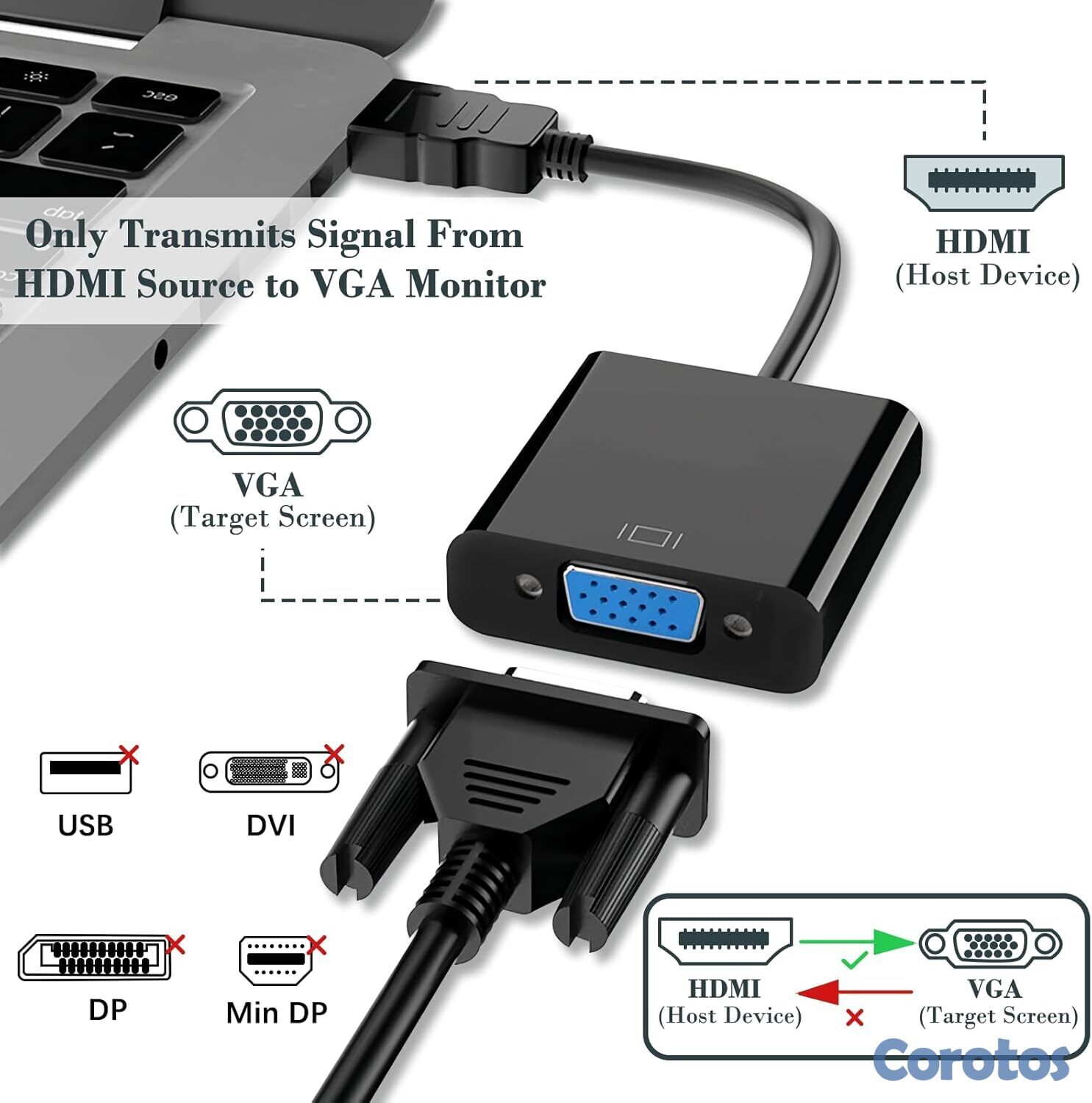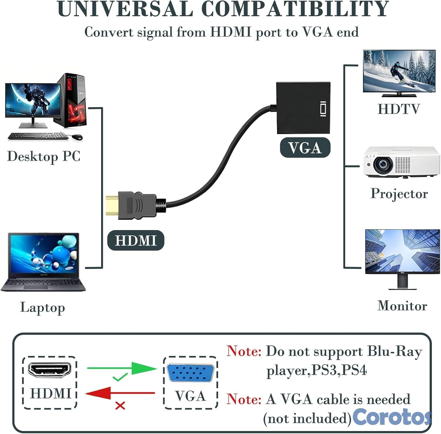 ✅ Incluye: Adaptador HDMI a VGA + Cable VGA.