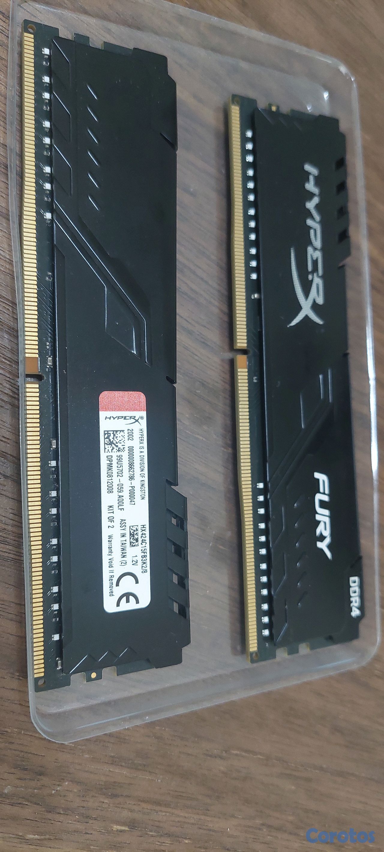 - Memoria RAM HyperX Fury DDR4 – Kit de 8GB (2×4GB), velocidad 2400 MHz, latencia CL15, voltaje 1.2V.