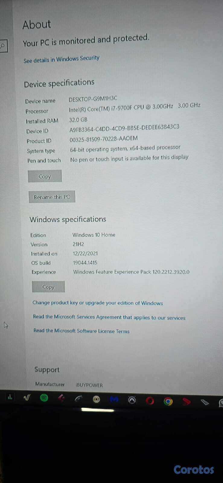 Modelo I7 - 9700F CPU 3.00GHZ