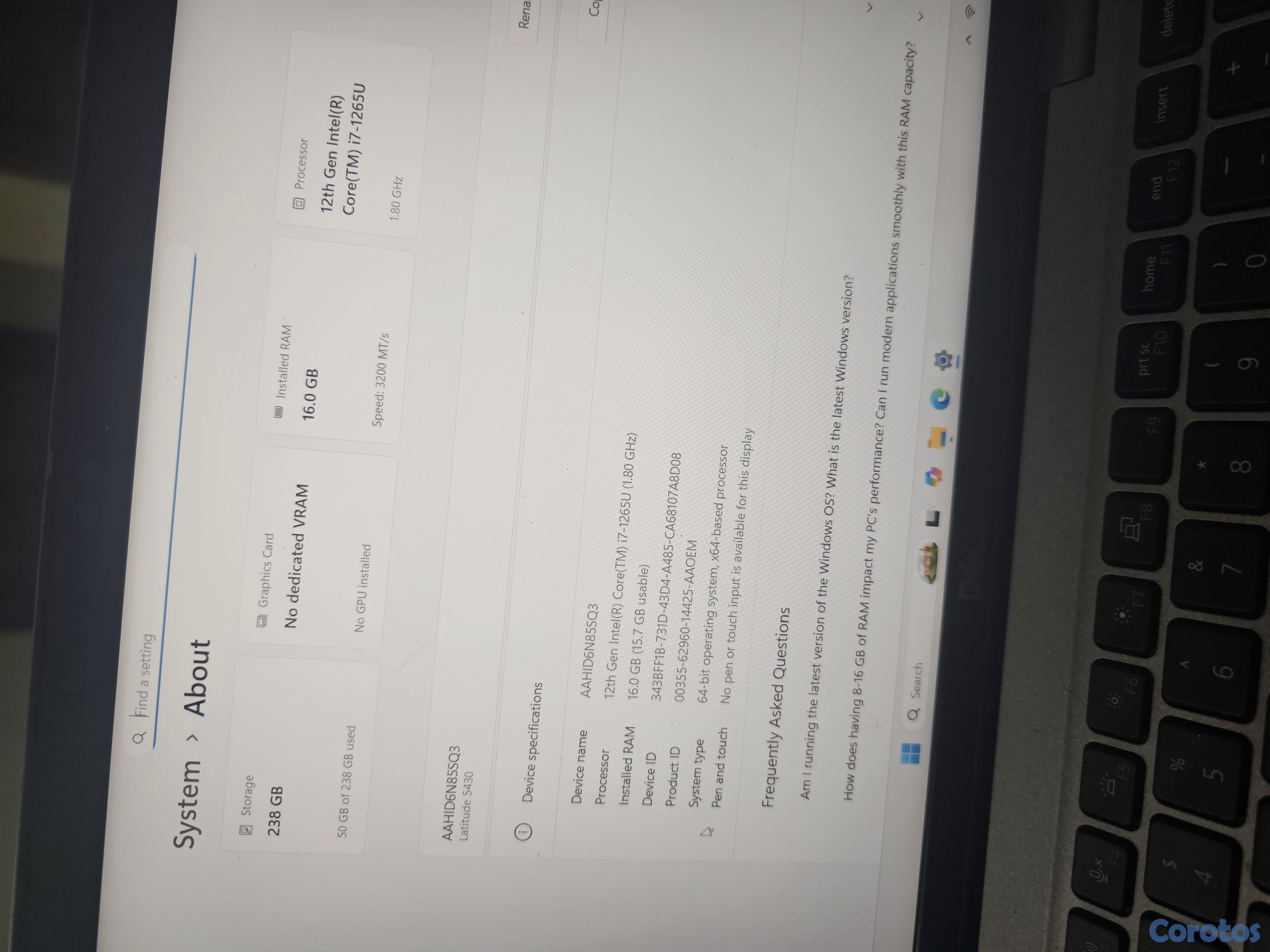 Dell Latitude 5430 i7-1265U 16gb ram, 256GB SSD