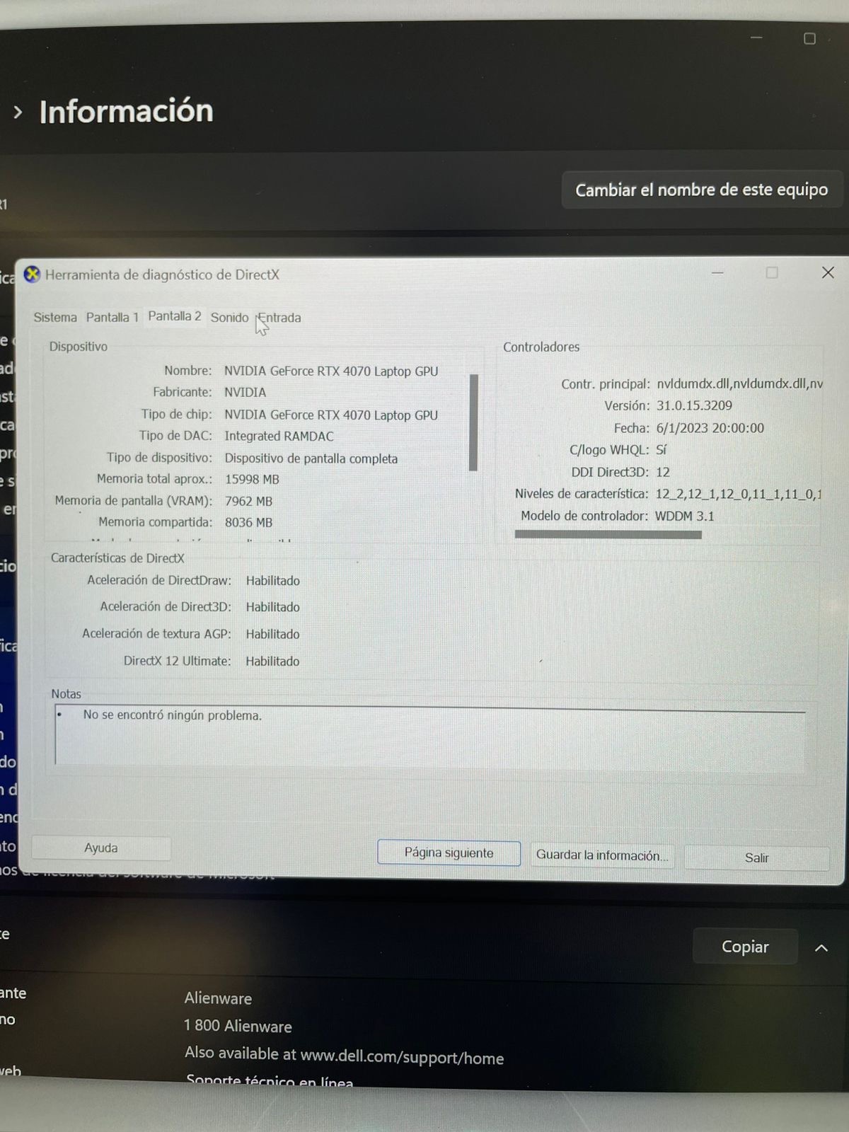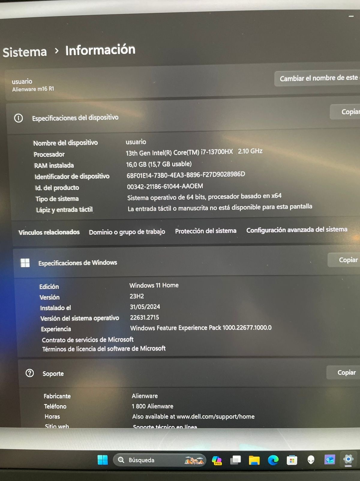 LAPTOP ALIENWARE 13th generación INTEL CORE i7 RTX 4070 16Gb de ram 1Tb SSD