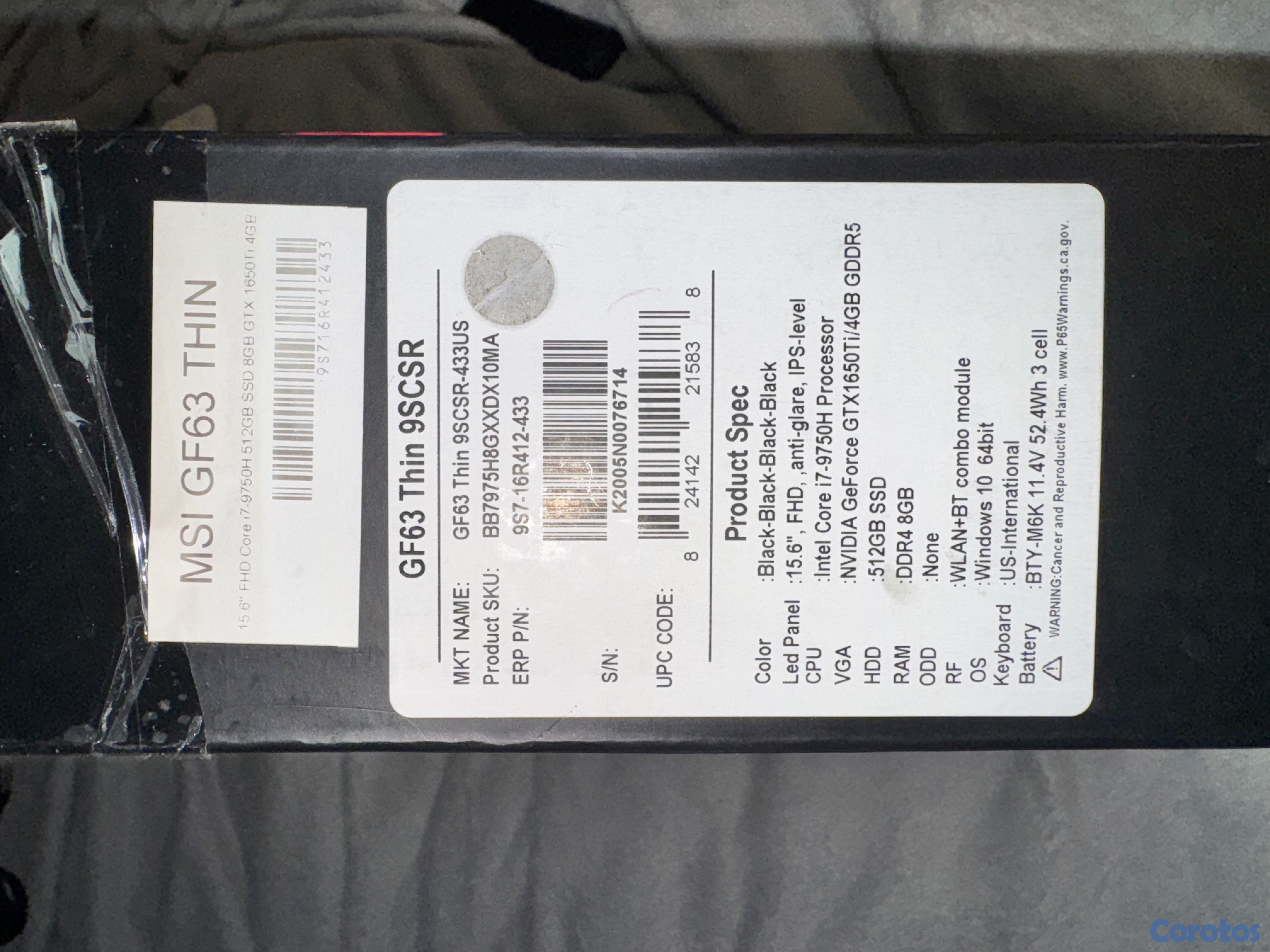 Laptop Gamer MSI GF63 Thin COMO NUEVA - PRECIO NEGOCIABLE