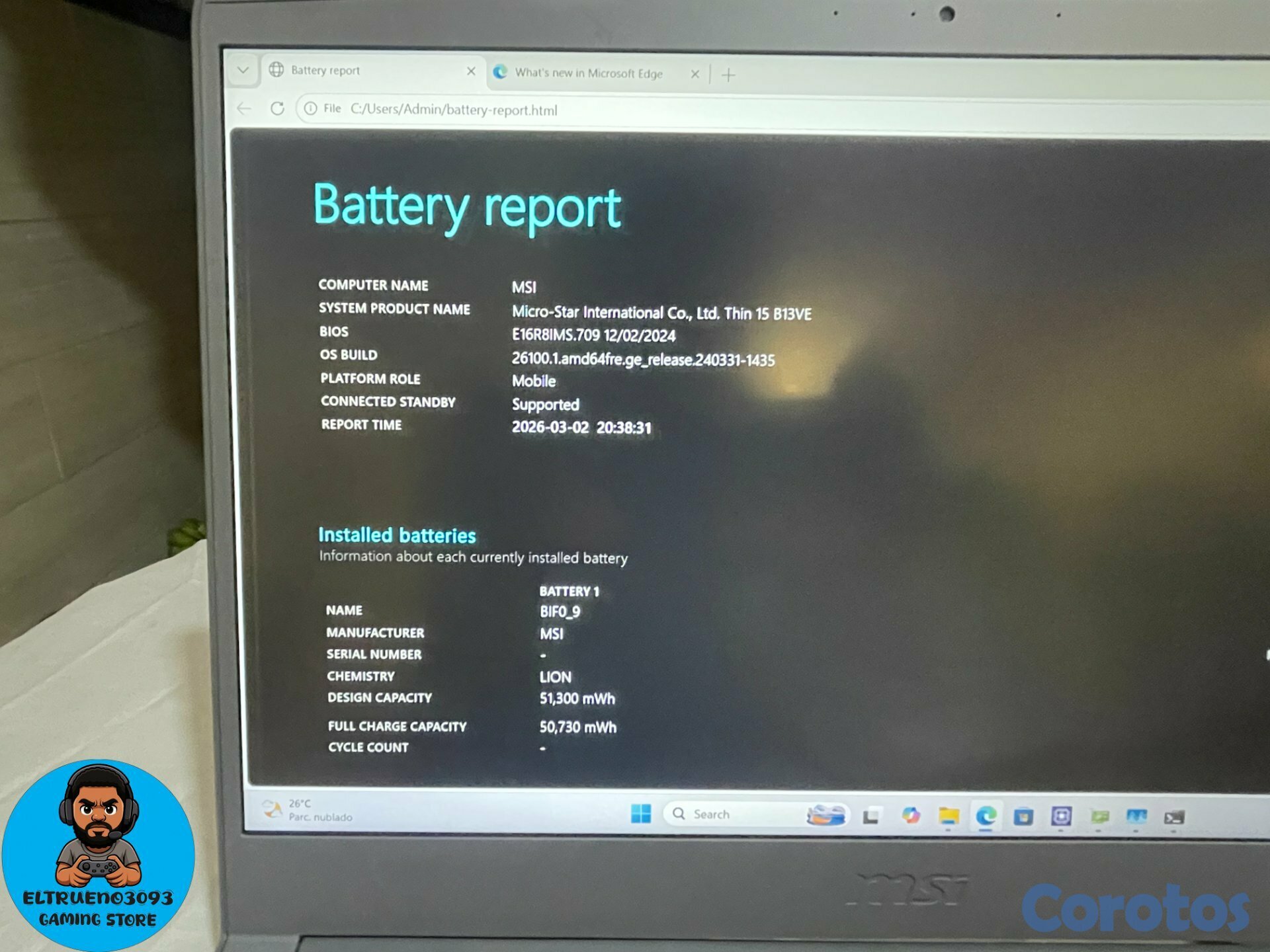 Laptop gaming MSI Thin 15 I5 13TH, RTX 4050, SSD 5
