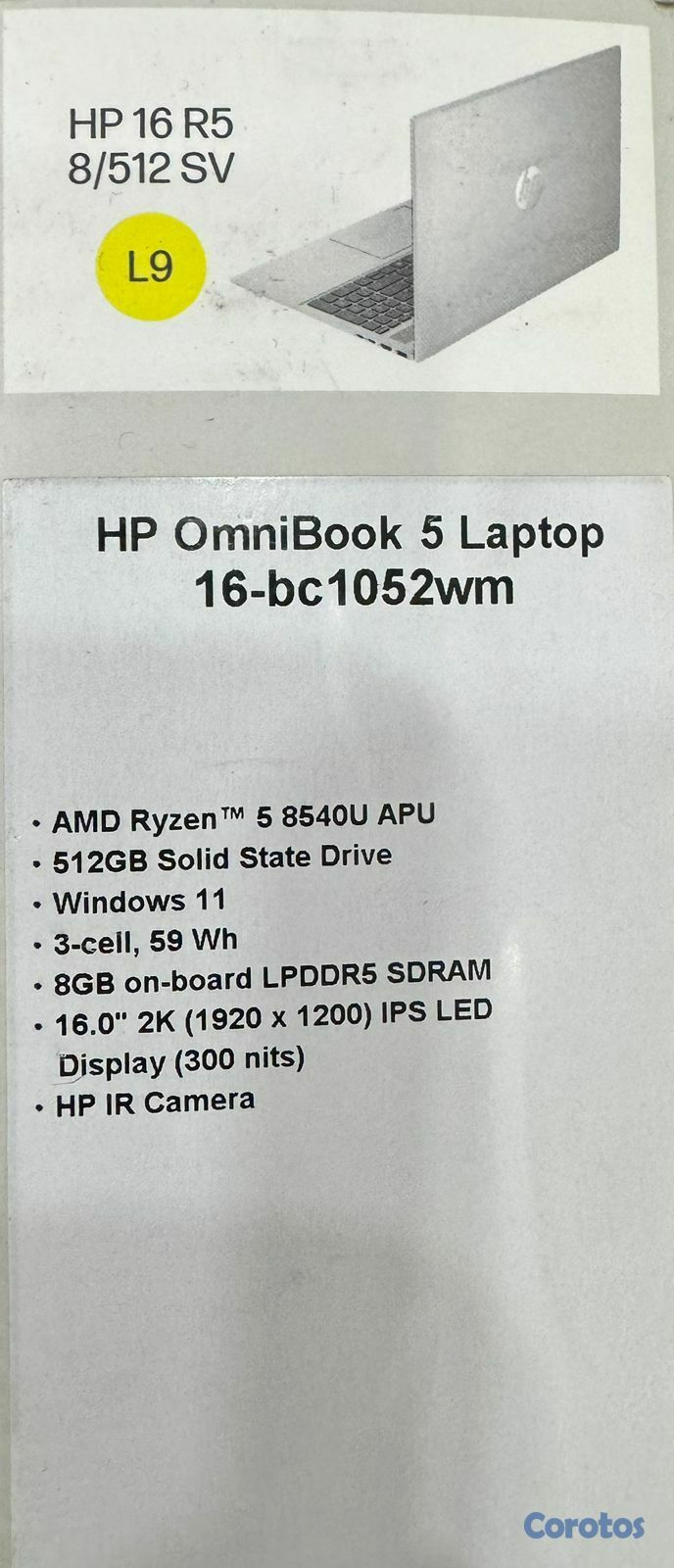 LAPTOP HP 16 INCH RYZEN 5 512GB SSD + 8GB RAM NUEV