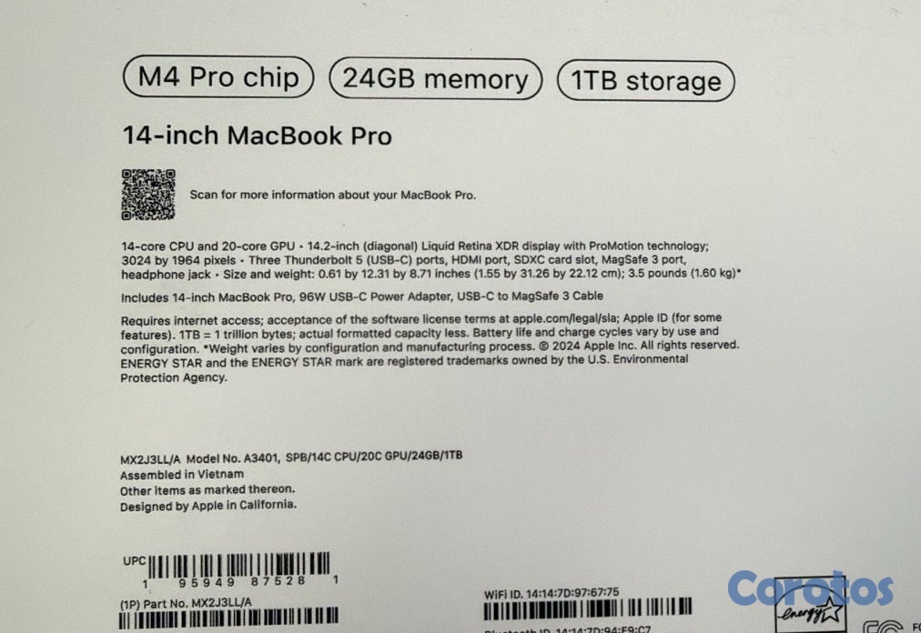 Mabook Pro 14” M4 Pro 24GB+1TB SSD Negra Sellada
