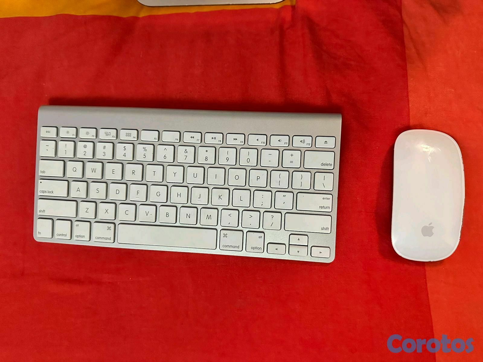 cristal con con una grieta, nitida, mouse y teclado mac inalanbrico