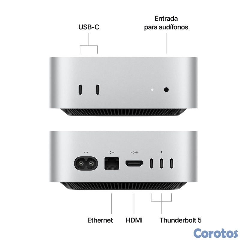 Llévate la nueva Mac mini con chip M4, una computadora compacta pero extremadamente potente, ideal para trabajo, oficina, diseño y productividad.