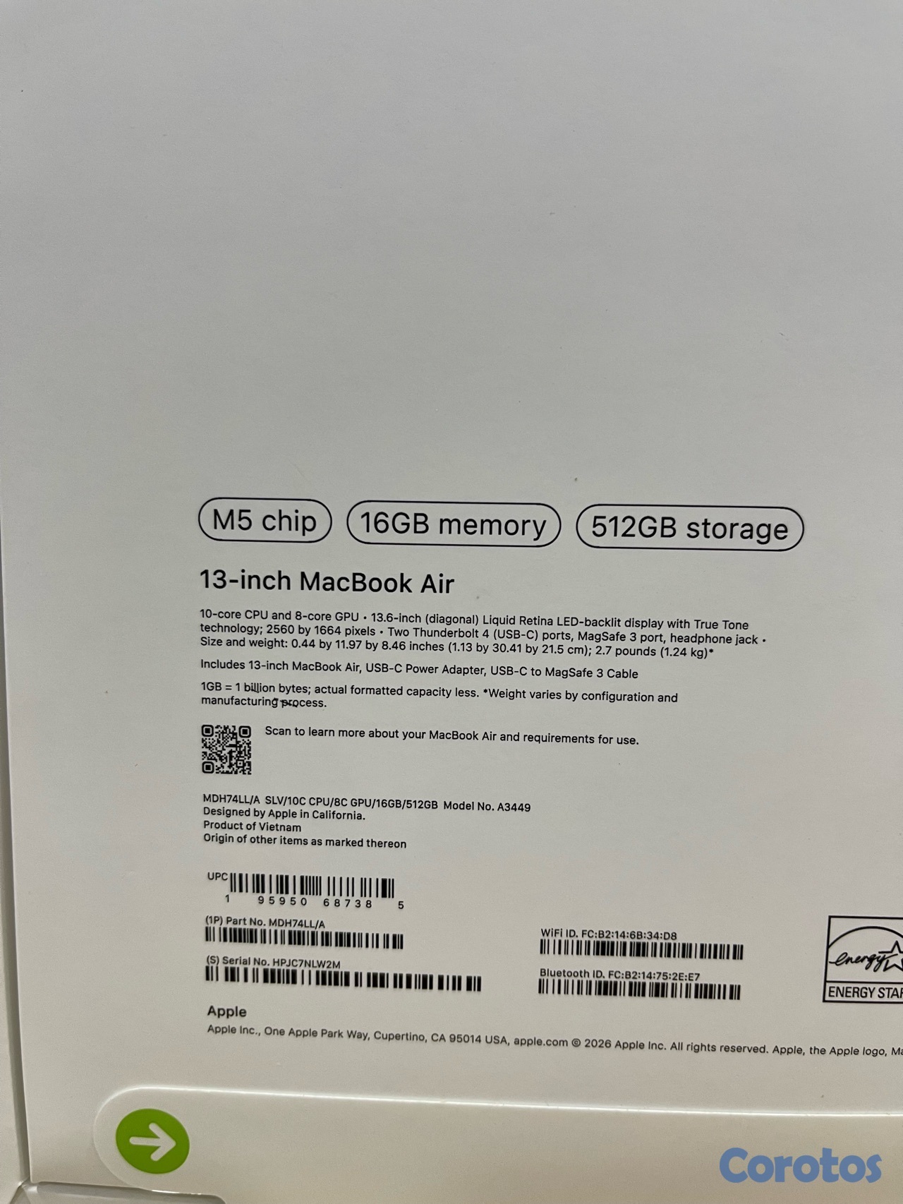 MACBOOK AIR 13" M5 512GB / 16RAM