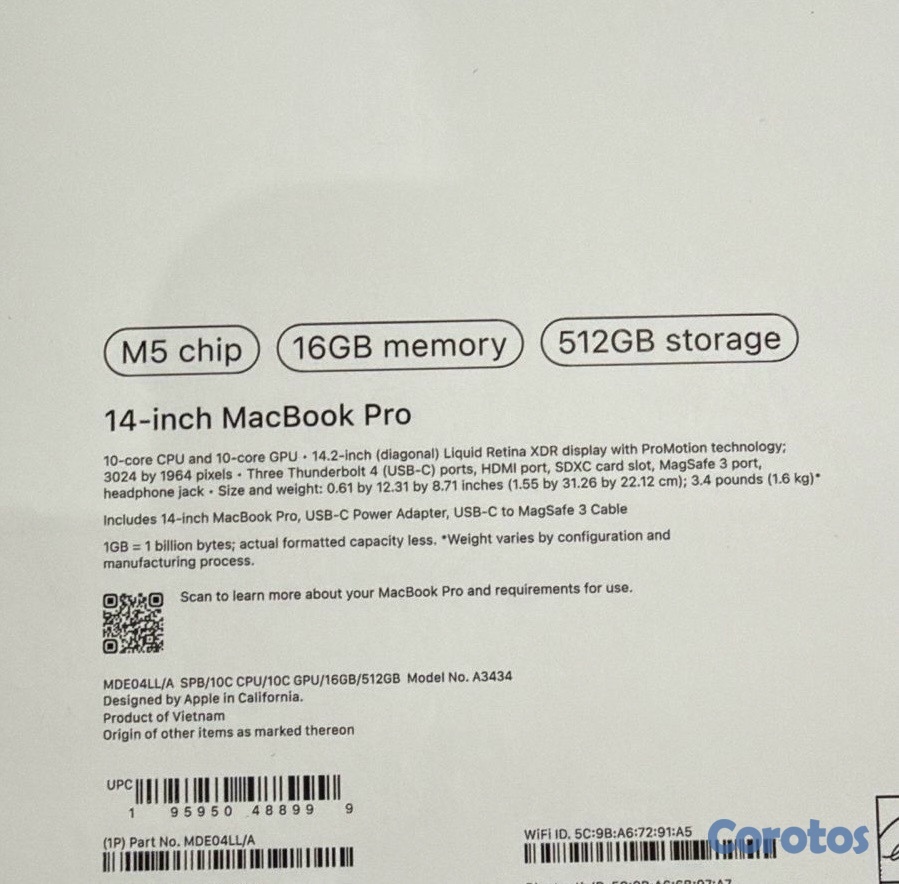 MacBook Pro 14” 2025 M5 16GB/512GB Nuevas Selladas