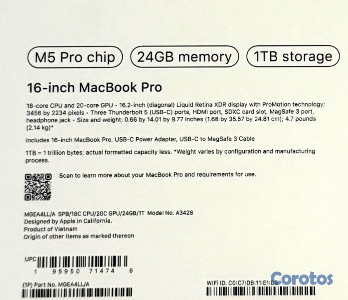 Modelo MacBook Pro 16.2” chip M5 Pro