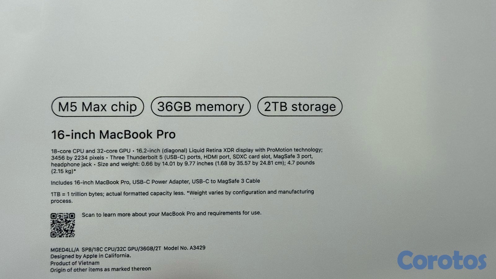 MACBOOK PRO 16” M5 MAX 2TB SSD 36GB RAM SELLADA
