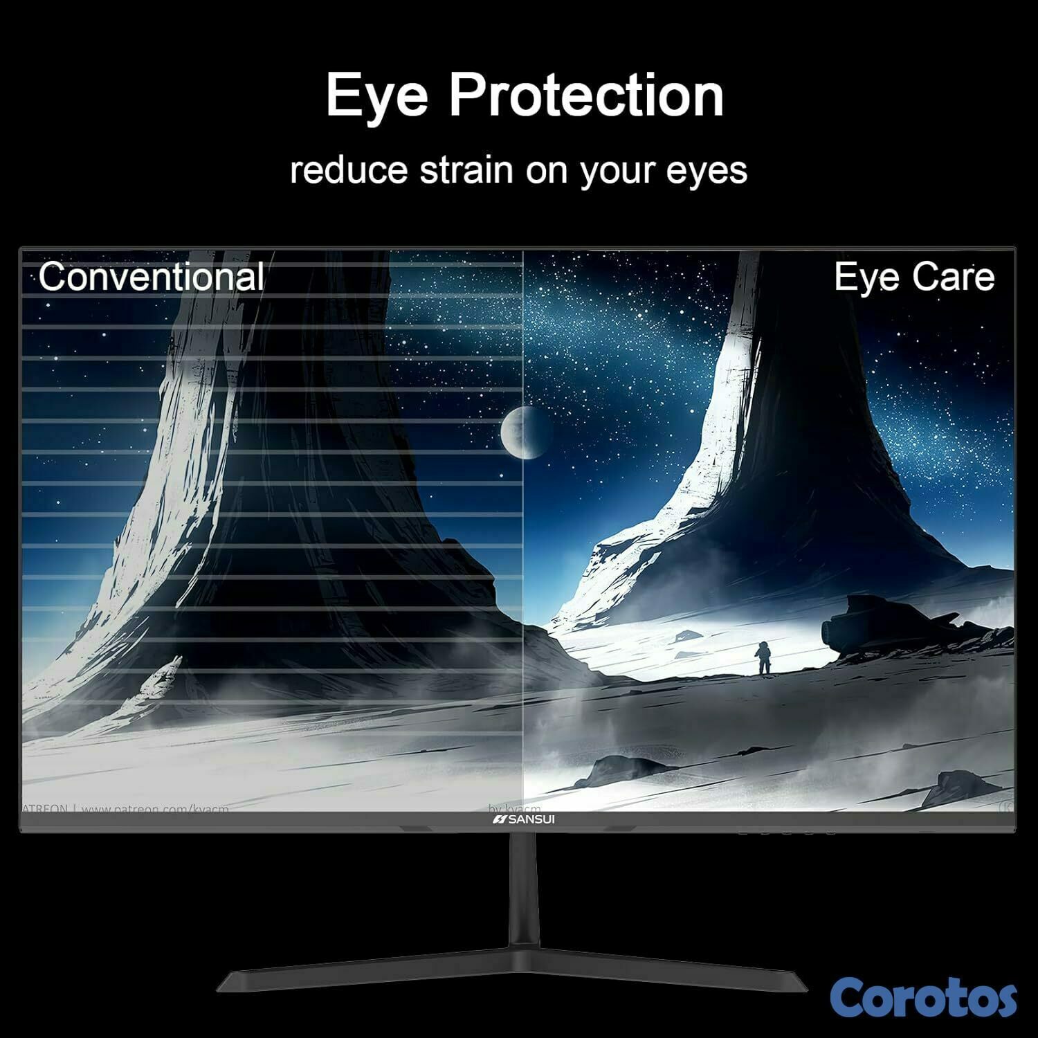 Diseño ergonómico: soporte de metal en forma de V, inclinación de -5° ~ 22°, ángulo de visión de 178°V/H; tecnología azul bajo, antirreflejos y antiparpadeo