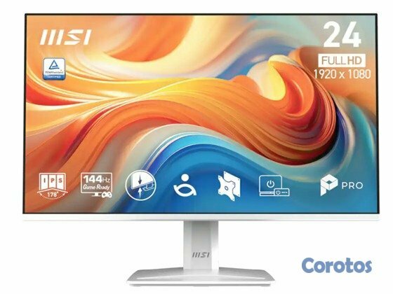 MONITOR MSI PRO MP243W E14 23.8" IPS FHD 144HZ, 1X HDMI 1.4B, 1X DISPLAYPORT 1.2A, 1MS (MPRT) / 4MS (GTG), ADAPTIVE-SYNC, HDR READY, ALTAVOCES INTEGRADOS, ANTI-GLARE, COLOR BLANCO (PRO MP243W E14)