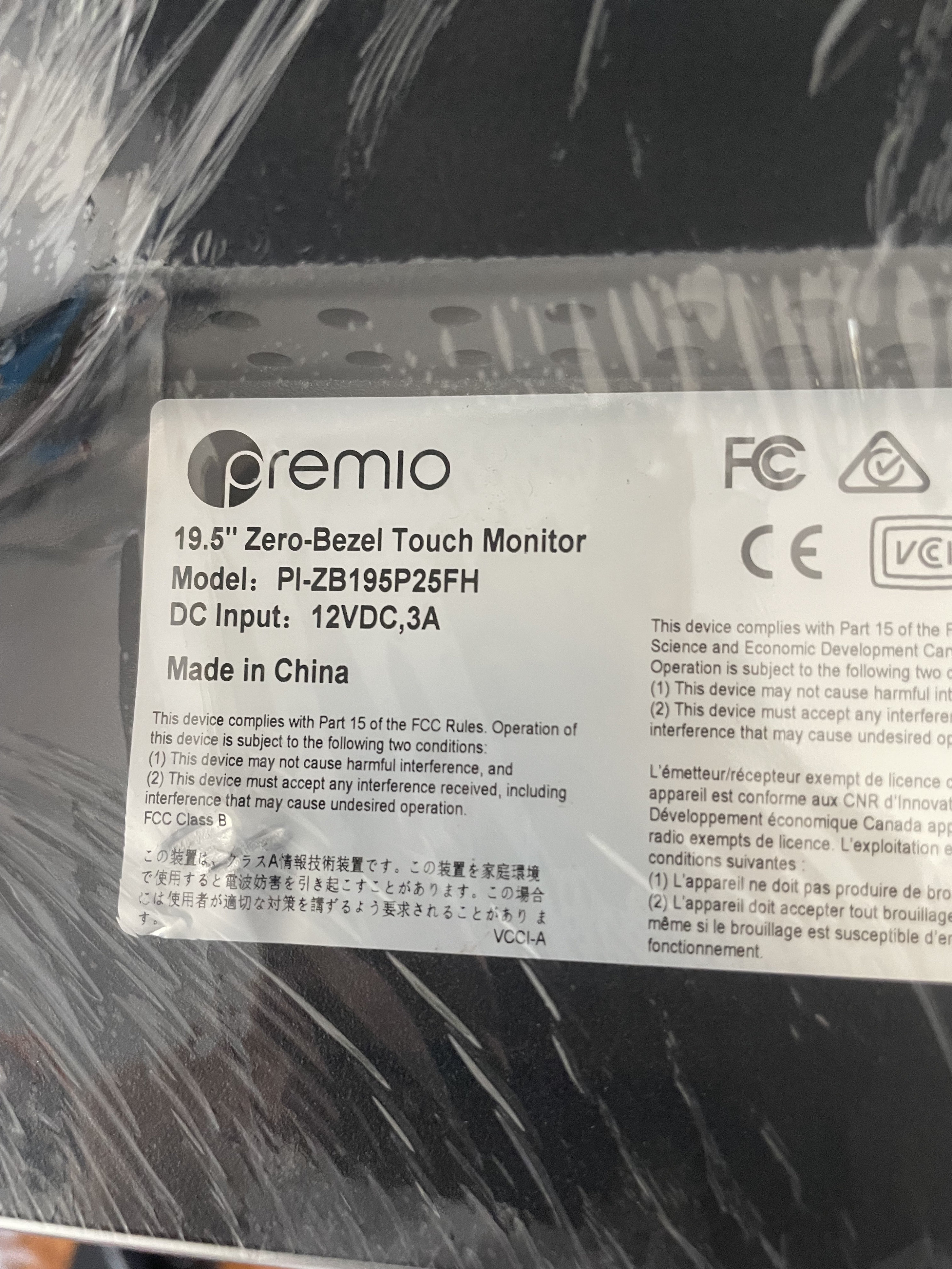 Monitor zero-bezel touch widescreen de 19.5” pulgadas sin base con entradas vga-hdmi