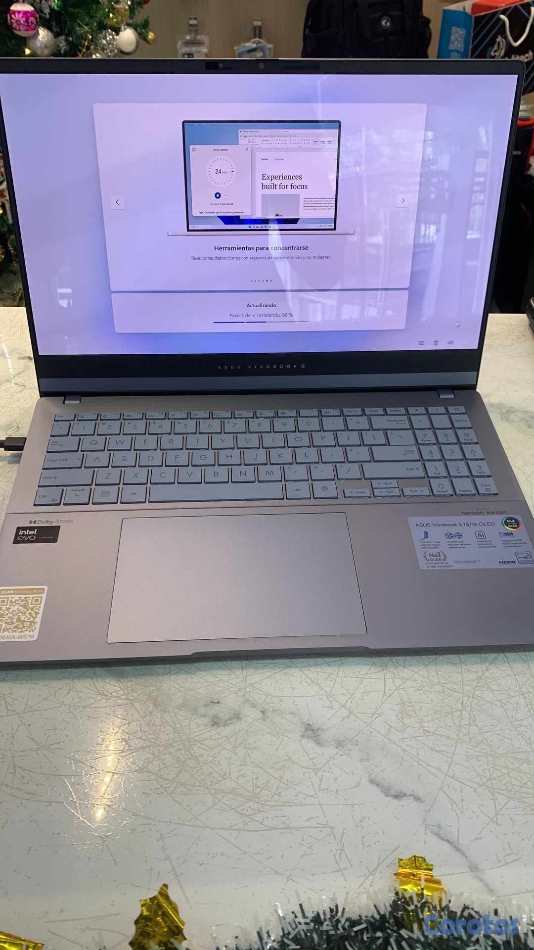 ASUS Vivobook S 15 S5506MA Laptop 2024, 15.6"" 3K, Procesador: Intel Ultra 7 155H 16-Core, ARC Graphics, 16GB de RAM y 1TB SSD, Backlit Keyboard, Thunderbolt 4, Wi-Fi 6E, Card Reader, Win11 Home, COU 32GB USB, Mist Blue