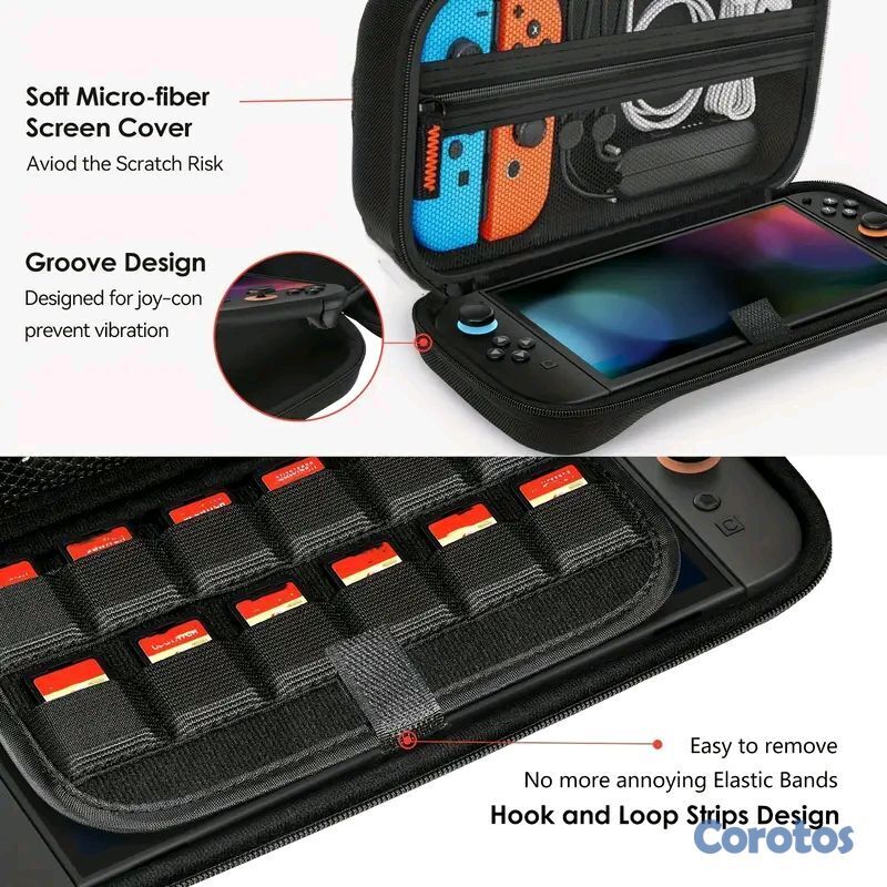 Mantén tu consola segura y organizada con este estuche resistente y de alta calidad, ideal para transportar tu Nintendo Switch sin preocuparte por golpes o rayones.