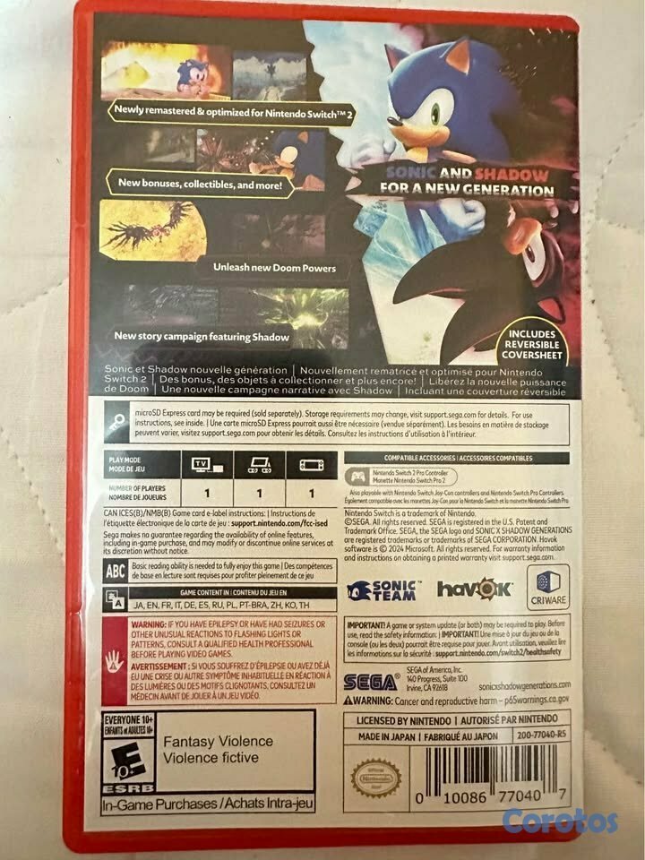Vendo Sonic x Shadow Generations Day One Edition para Nintendo Switch 2, Open Box.