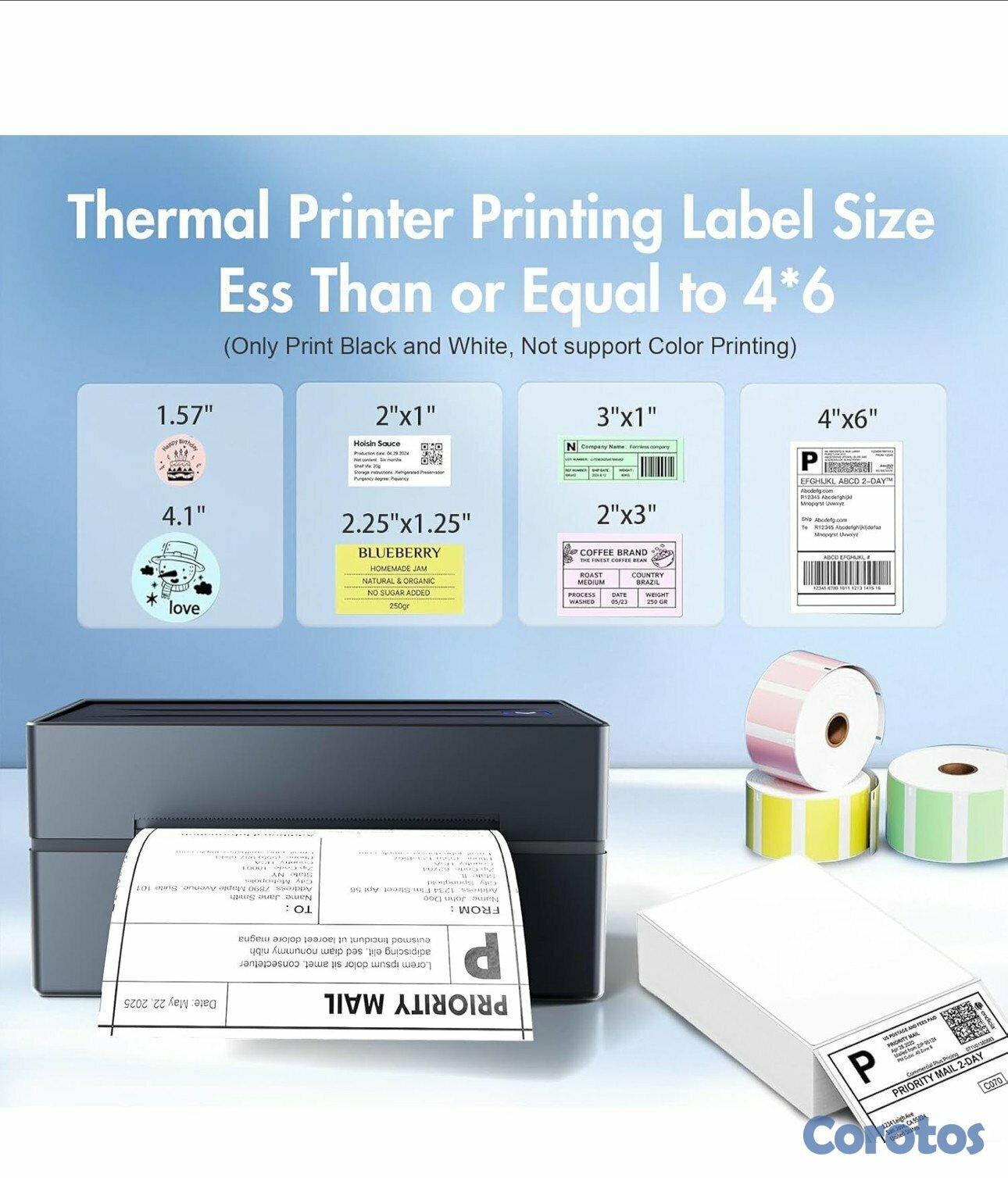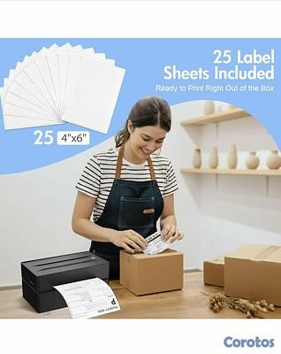 Soporte de tamaño de etiquetas múltiples: admite etiquetas térmicas con un ancho de 1.57" a 4.3", compatible con etiquetas de 4x6, 3x2 y de tamaño personalizado para adaptarse a diversas necesidades de embalaje. (Nota: las impresoras térmicas solo pueden imprimir en blanco y negro, y vienen con 25 hojas de papel de etiqueta impermeable)